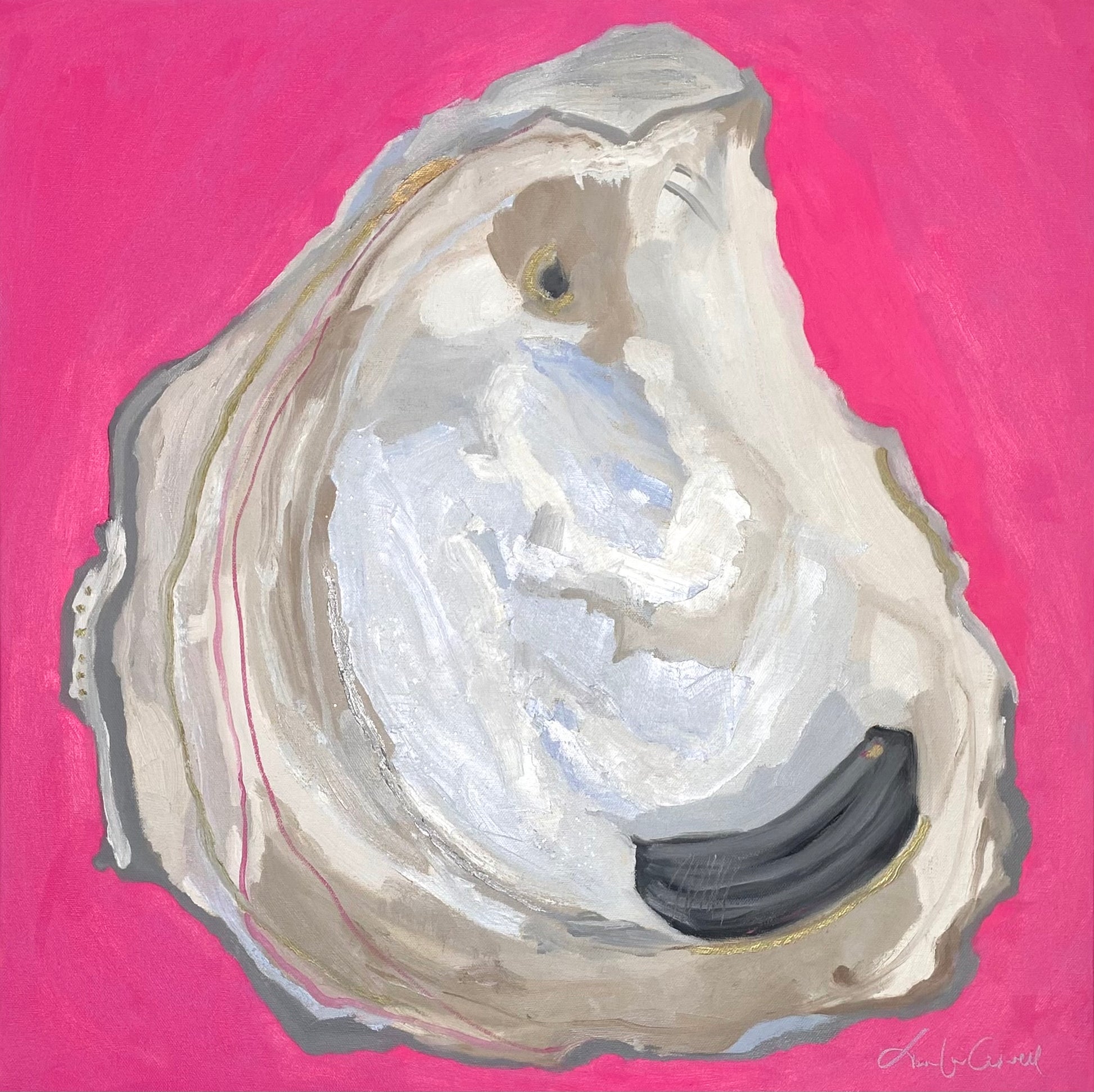 Audacious Rose Oyster I is an original oyster painting against a fabulously bold pink background. It is layered with accents of shimmering metallic gold, silver, and pearl white. A small splash of iridescent glitter adds a playful sparkle making this painting shimmer as you walk by....