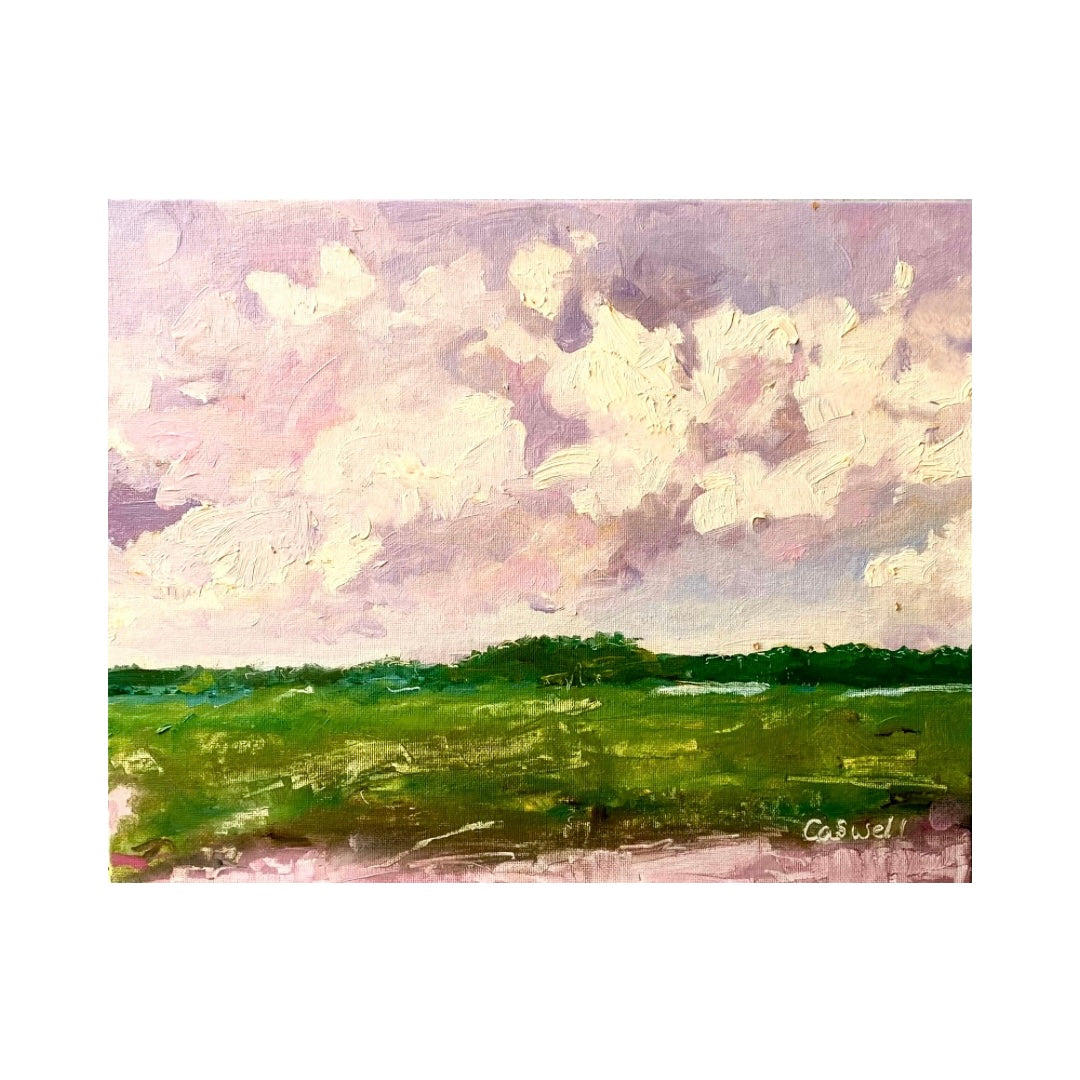 Dancing clouds and brightening marsh grass mark the arrival of spring in Charleston. "Emergence of Spring." captures the light, airy dance of clouds and winds as an evening storm leaves. This painting brings a fresh, joyful energy to your space. Perfect for brightening any room with a touch of nature’s beauty.