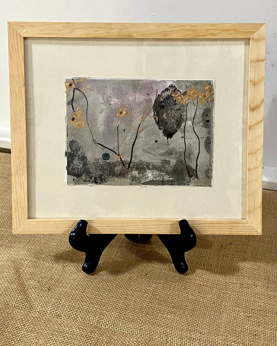 Painting is sold matted & framed. The matting is a cream color, and the frame is wood, as shown. Framed dimensions 11”x13”. Ready to hang!