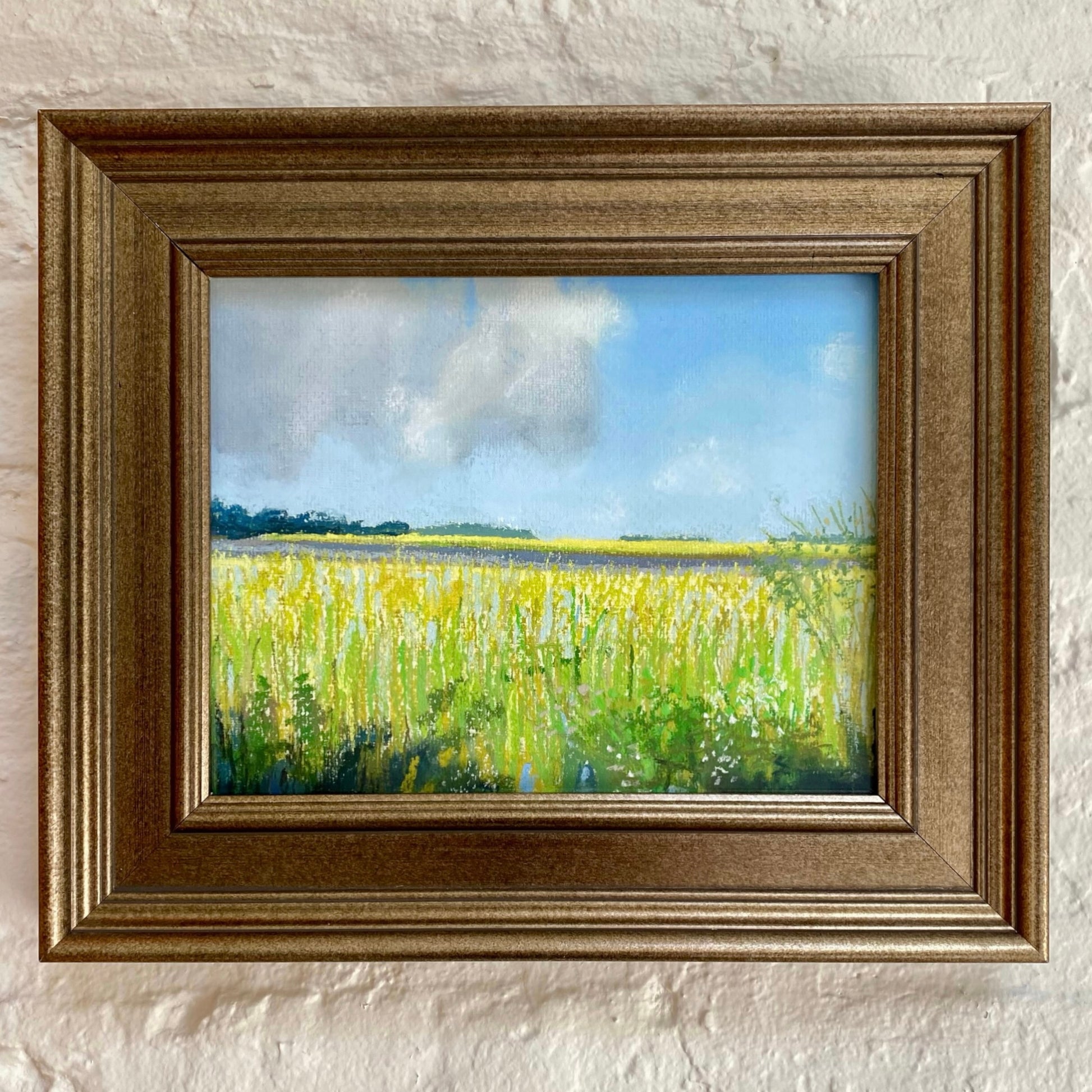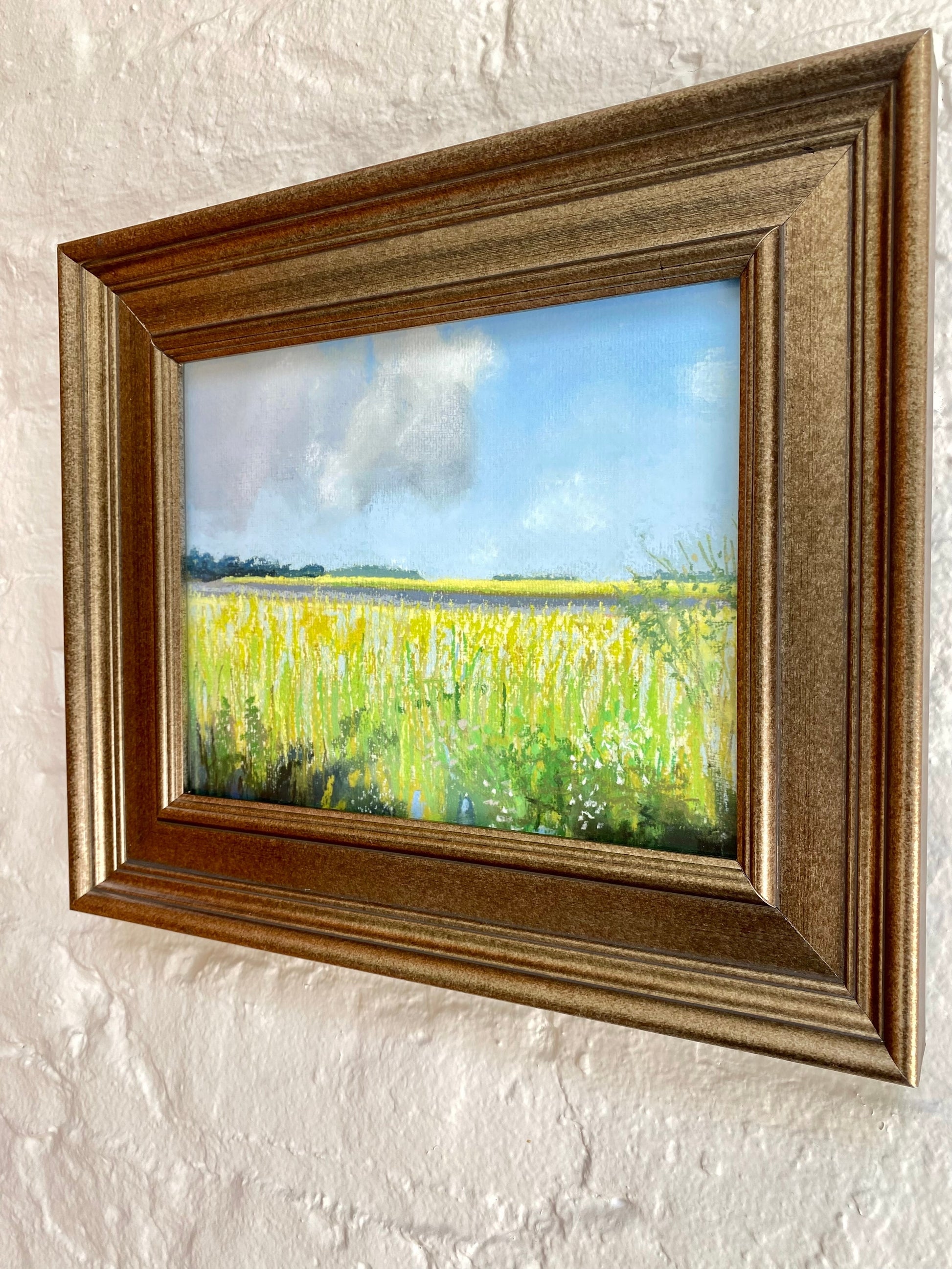 “Touch the Sky” is an original pastel painting on paper. Classic, and sold in a gorgeous deep gold wood frame, with grain that shines through - and under UV protection glass.