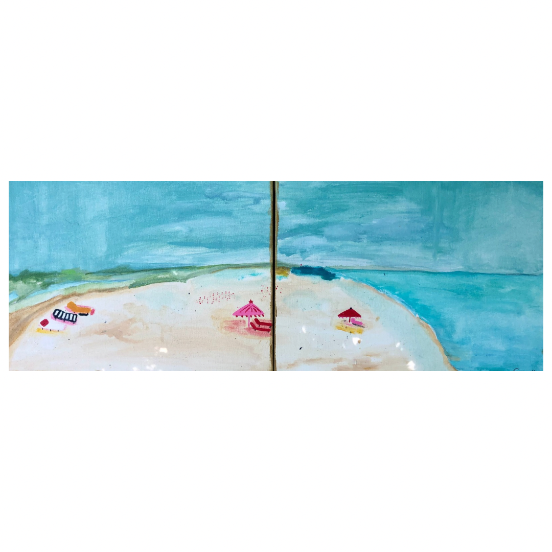 Dive into summer vibes with "Tropical Days," a playful painting bursting with color. This vibrant artwork brings the carefree spirit of tropical getaways right into your space, perfect for brightening any room with a splash of ocean breeze and sunny warmth. Let your walls tell a story of beachside fun and turquoise dreams! "Tropical Days" is a diptych, each measuring 8" x 10" mixed media on canvas.