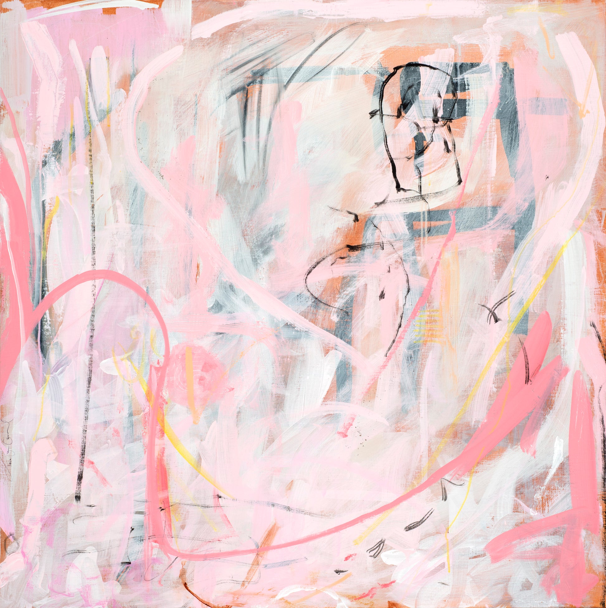 "She Loves" is a 36"x36" mixed media on gallery wrapped canvas. It's beautifully layered, like a woman's heart. The word LOVE is present in an abstract way. Sides painted white.